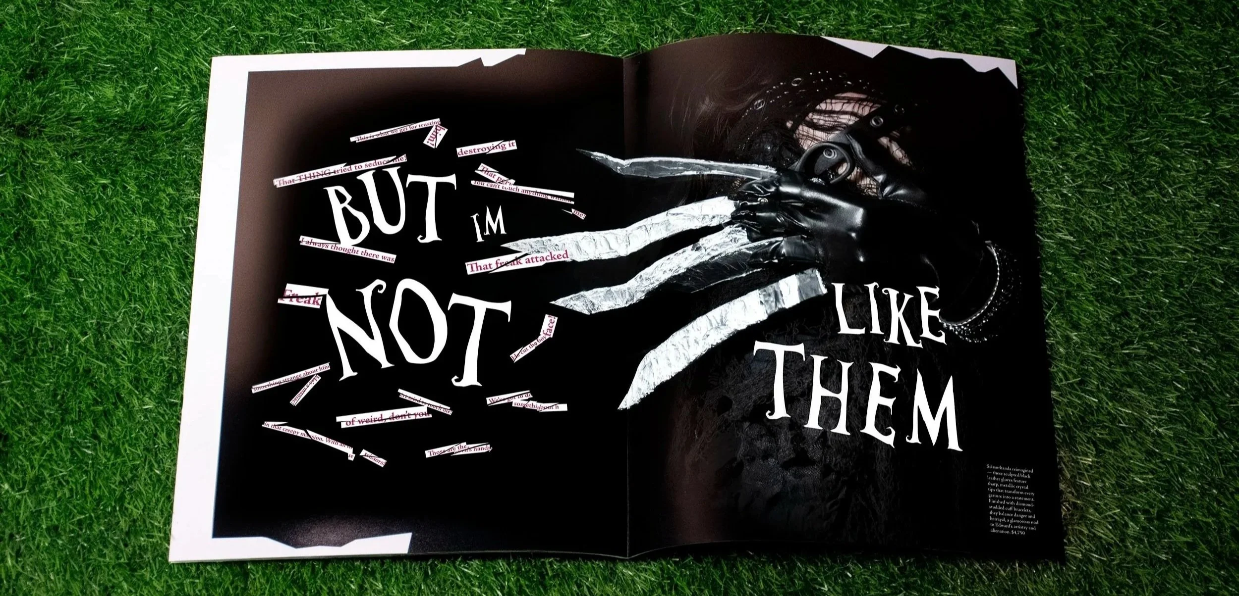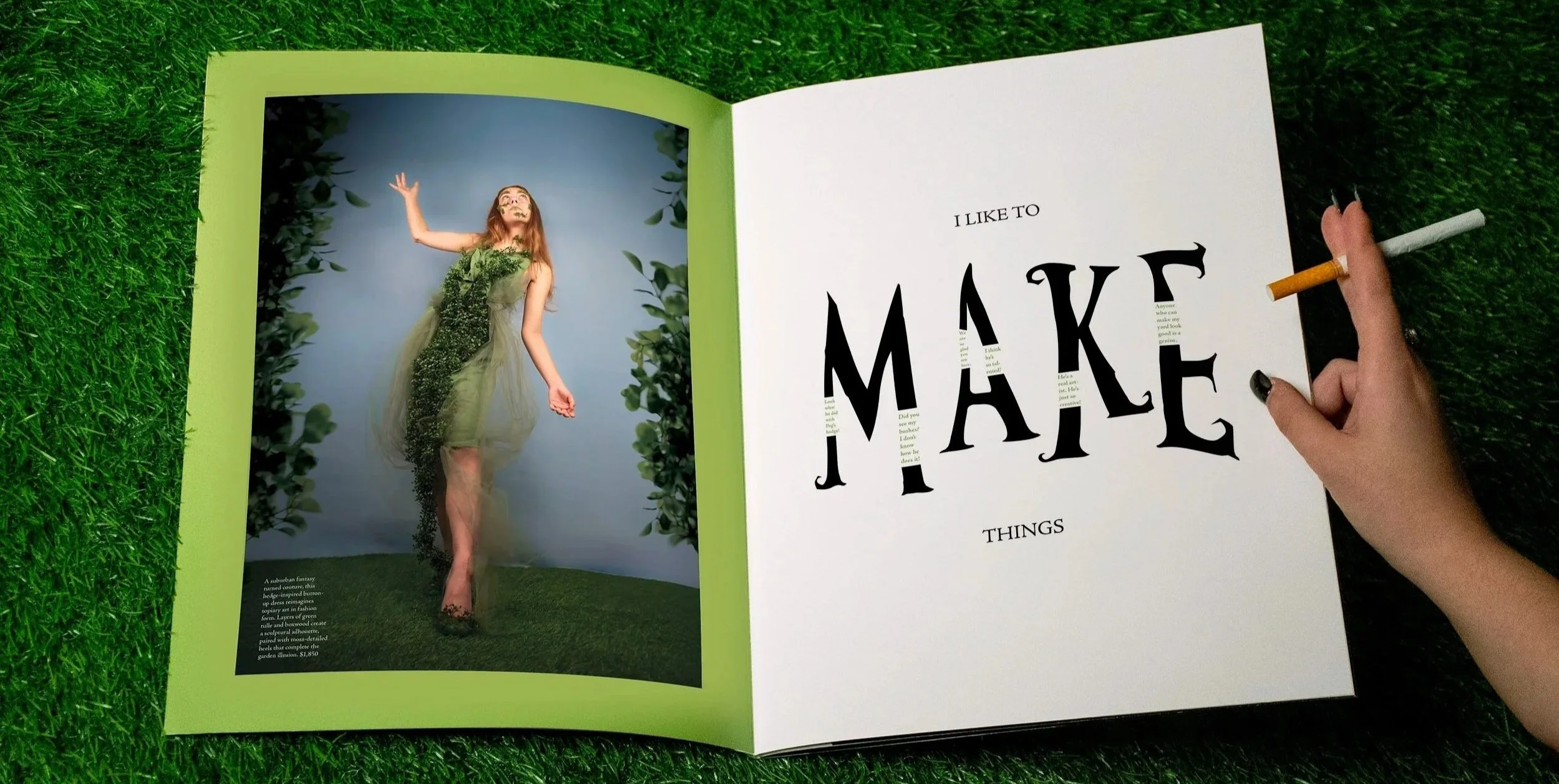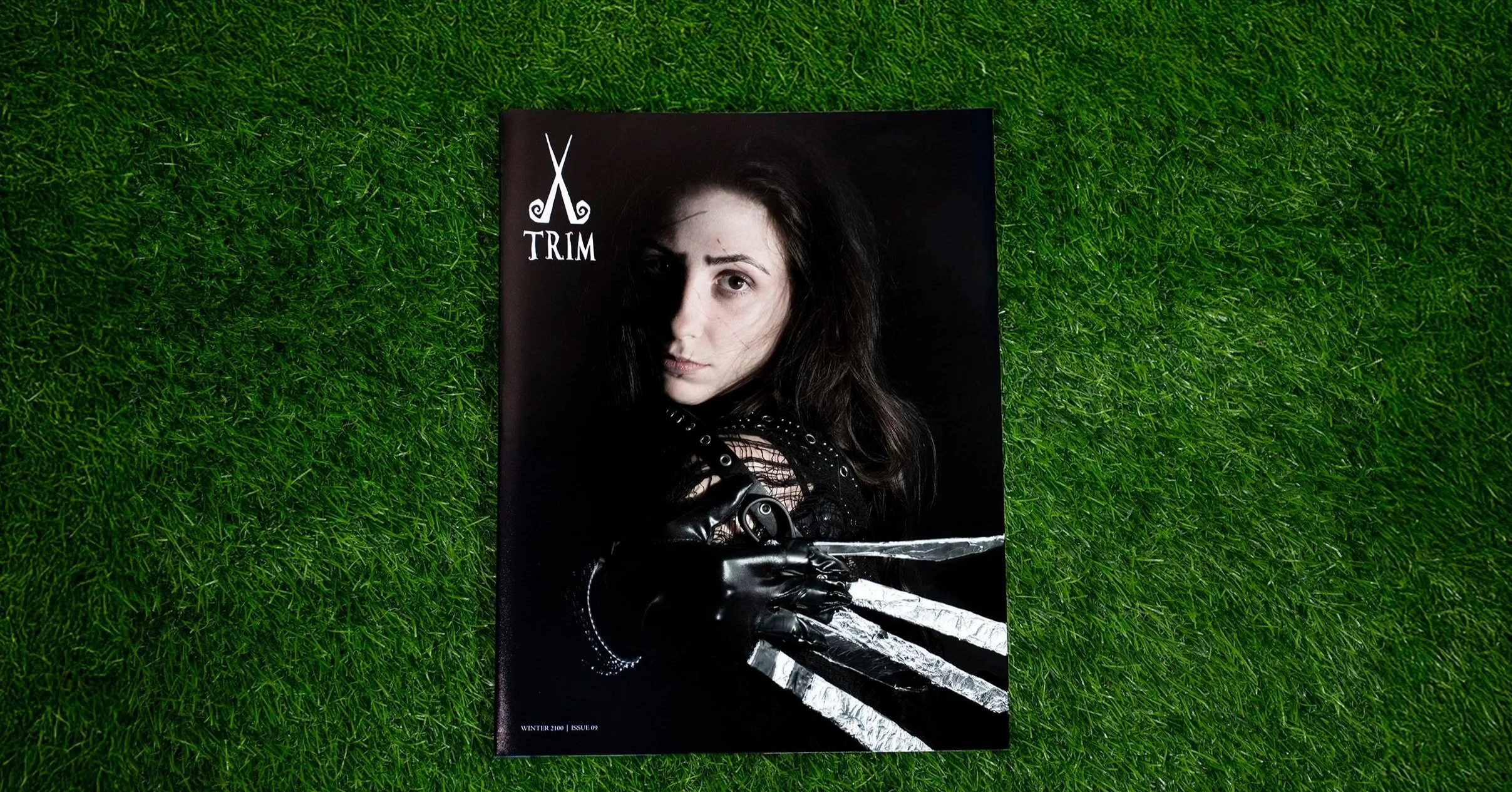 Trim Magazine reimagines Edward Scissorhands through a plant’s life cycle—sprouting, flowering, and wilting—to mirror Edward’s journey from creation to admiration to alienation. Garments, color, lighting, typography, and language evolve together from organic and vibrant to dark, jagged, and fragmented—using film dialogue to shape the tone of each spread. The result is an immersive, cinematic magazine experience that traces Edward’s emotional arc.