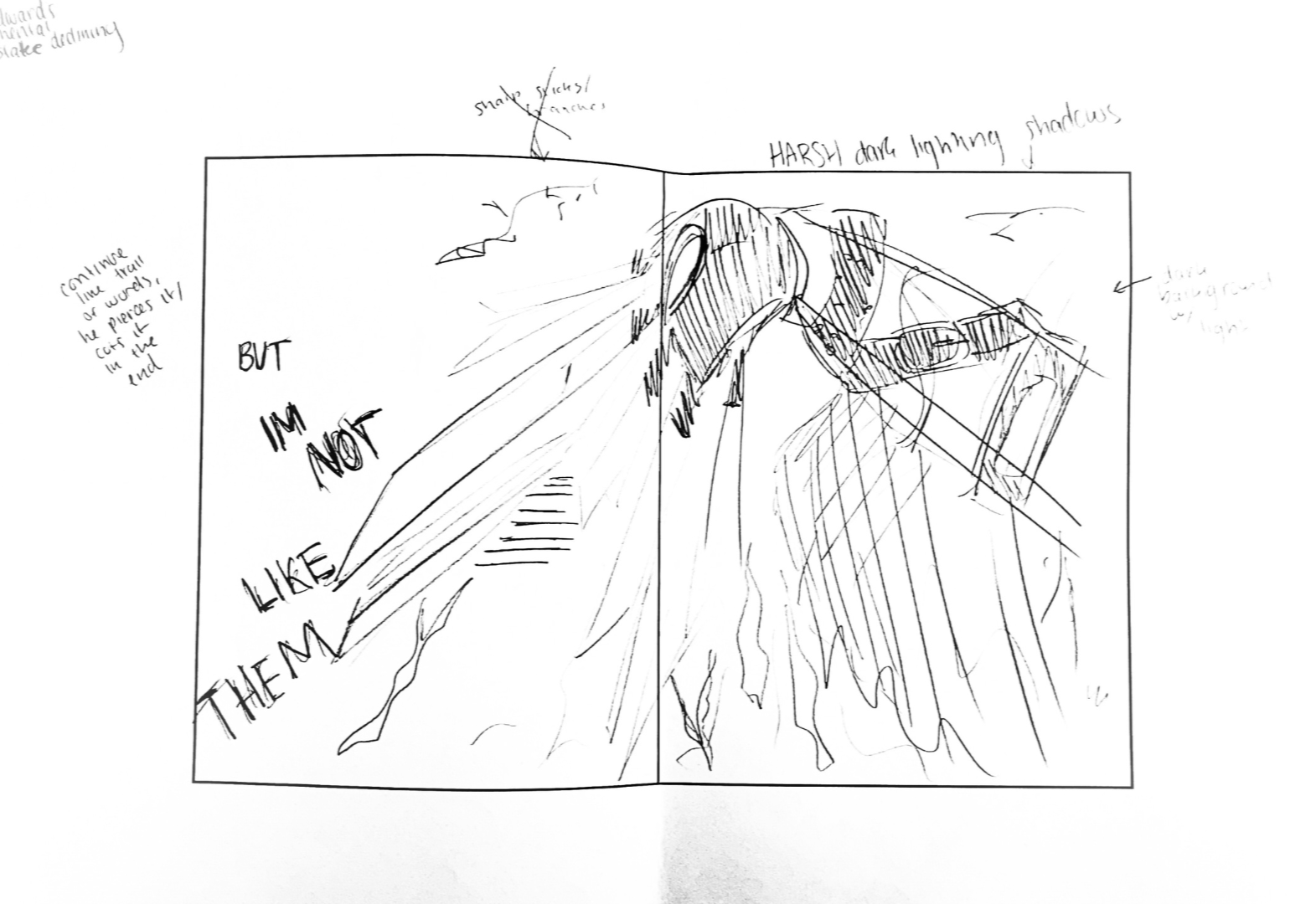 After developing moodboards and exploring materials, I sketched an outline to communicate the story visually. I then designed my model’s outfits by sourcing fabrics and materials from thrift stores, crafting pieces that reflected my organic, reimagined interpretation of Edward’s journey.